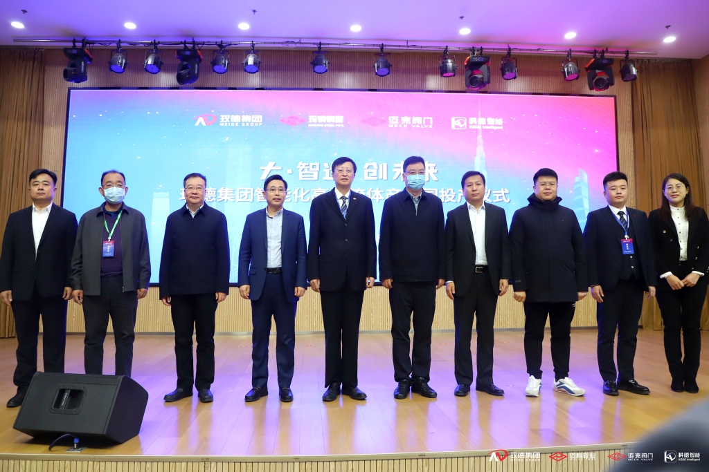 中国铸造协会会长张立波、平阴县委书记杨旭东、平阴县委副书记王秀成、玫德集团董事局主席孔令磊、山东泰山钢铁集团董事长王永胜、济南市热力设计研究院院长王峡、山东神力索具总经理杜大平、盛卓集团董事长葛超众、迈科管业总经理郭雷以及济南科德总经理刘少云共同按下启动键,为智能化高端流体产业园投产开工启动。