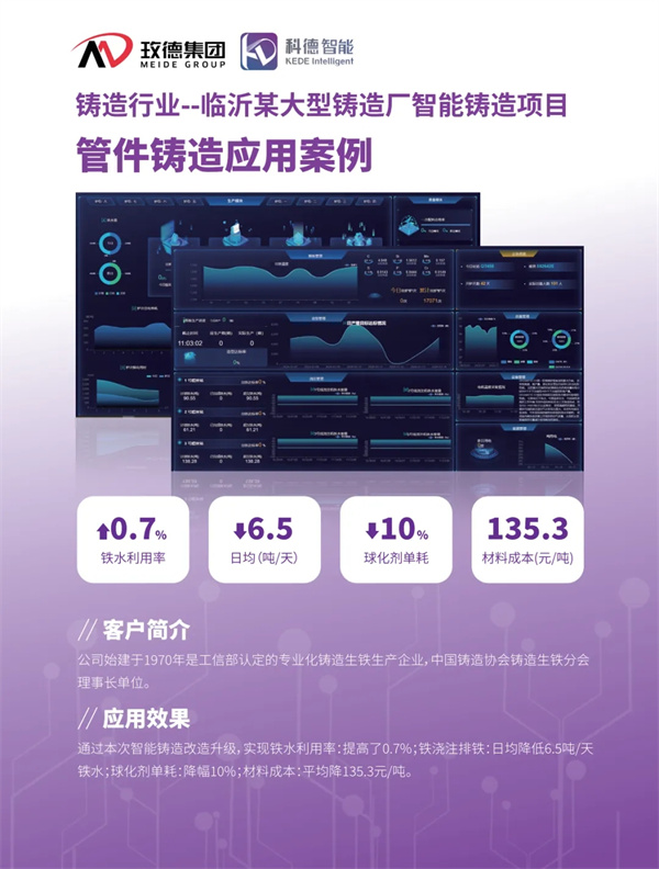 玫德集团携手旗下济南科德智能科技有限公司、临沂玫德庚辰金属材料有限公司、玫德集团威海有限公司,以强大的参展阵容亮相此次盛会。展会上,玫德集团不仅带来了铸造MES、智能仓储、铸造用生铁、叉车平衡重、玛钢管件、沟槽管件、电力金具和灌浆套筒等一系列拳头产品,更通过现场演示与讲解,充分展示了其在智能制造领域的雄厚实力。