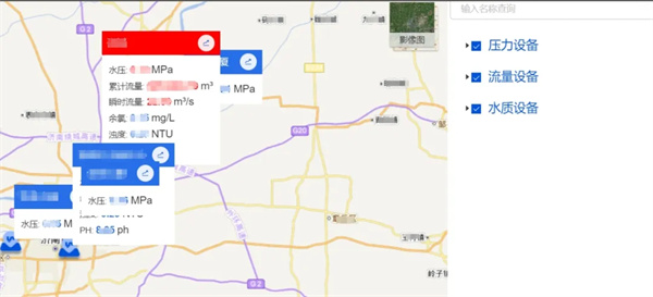 通过“一张图”对管网压力、流量、水质等数据进行实时动态监测,各项管网数据可根据需要灵活的分层、分级、分专题进行动态展示。同时系统提供多种灵活的报警配置,包含限值报警、振幅报警、伴随报警,系统可根据不同的场景自动匹配不同的报警配置,当数据异常时,系统会通过弹窗、图标变红、语音提醒等多种方式进行报警,全方位对管网运行状态进行实时监测、智能预警。
