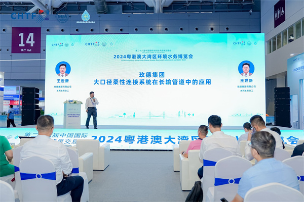 11月14日下午,玫德集团市政BG水利BU副总裁、水利水务总工王世新参加供水专业论坛(品牌发布)分享了《大口径柔性连接系统在长输管道的应用》,验证了柔性沟槽钢管连接管道系统抗震、抗压、抗沉降的优势,满足极限过载强度要求,安全可靠。并且玫德集团大口径管道沟槽连接技术经水利部专家鉴定为:产品国际先进,推广价值巨大,列入水利部产品推广目录。