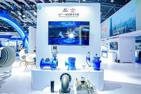 本次展会玫德不仅跟现场专家、同行分享了玫德智慧,还展出了大沟槽柔性连接系统、大口径沟槽管卡、水厂一站式解决方案、二次供水一站式解决方案、城市管网一站式解决方案、直饮水系统、球墨铸铁管材管件等一站式产品及解决方案。