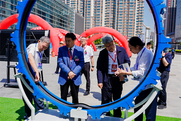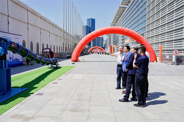 原甘肃省水利厅一级巡视员、甘肃省水利学会理事长吴天临参观玫德集团自主研发的大口径钢管柔性连接技术