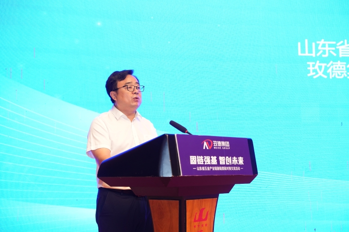 玫德集团作为链主企业做主旨演讲:玫德集团副总裁、公共关系部总裁于博元,做《当前形式及玫德对策》主题演讲,介绍在面对国内国外复杂严峻的经济形势和全球供应链重构的形势下,玫德集团如何采取措施,提高应对市场的竞争和提升抗风险能力,赋能产业链的融合与稳固。